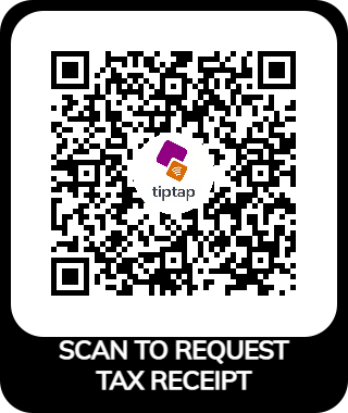 TipTap Pay: We now have TipTap pay for your convenience. Scan the QR Code and register your card (one time only) and you will be able to receive a tax receipt. If you are using more than one device or card, register each one as you use it, as each separate device (even if you are using the same account) generates a different four digit code.
